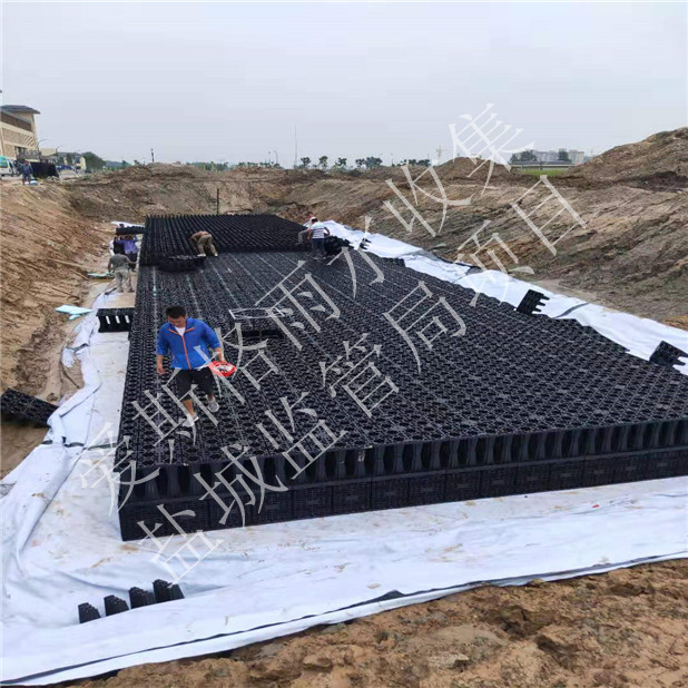 雨水蓄水模塊主要作用是雨水收集、儲存、調蓄。降雨時把雨水徑流的高峰流量暫存其內 ,待最大流量下降后再從雨水收集池中將雨水慢慢地排出。這樣既能規避雨水洪峰,實現雨水循環利用,又能避免初期雨水對承受水體的污染,還能對排水區域間的排水調度起到積極作用。