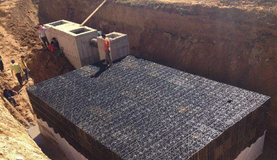 當(dāng)降雨量大過城市排水量時(shí),啟動(dòng)區(qū)域雨水戰(zhàn)略儲(chǔ)備系統(tǒng),雨水快速流入模塊池內(nèi),大量存儲(chǔ)雨水,待暴雨過去后再排放到指定出口或提前進(jìn)行預(yù)排洪,降低城市排水壓力,從而根本解決城市洪澇災(zāi)害。