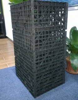 雨水收集裝置并不是單純的一個大儲水罐,而是采用無毒無害的聚丙乙烯材料做成的一個個幾十厘米見方的籠狀儲水器。