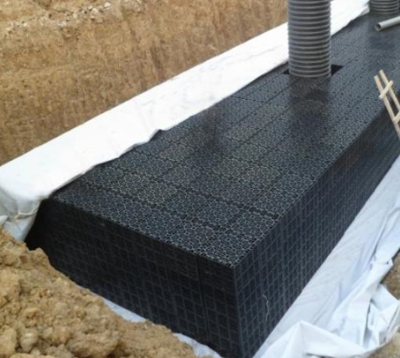 塑料模塊組合水池是以聚丙烯塑料單元模塊相組合,形成一個地下貯水池,在水池周圍根據工程需要包裹防滲土工布或單向滲透土工布,組成貯水池或滲透調洪池兩種不同類型.